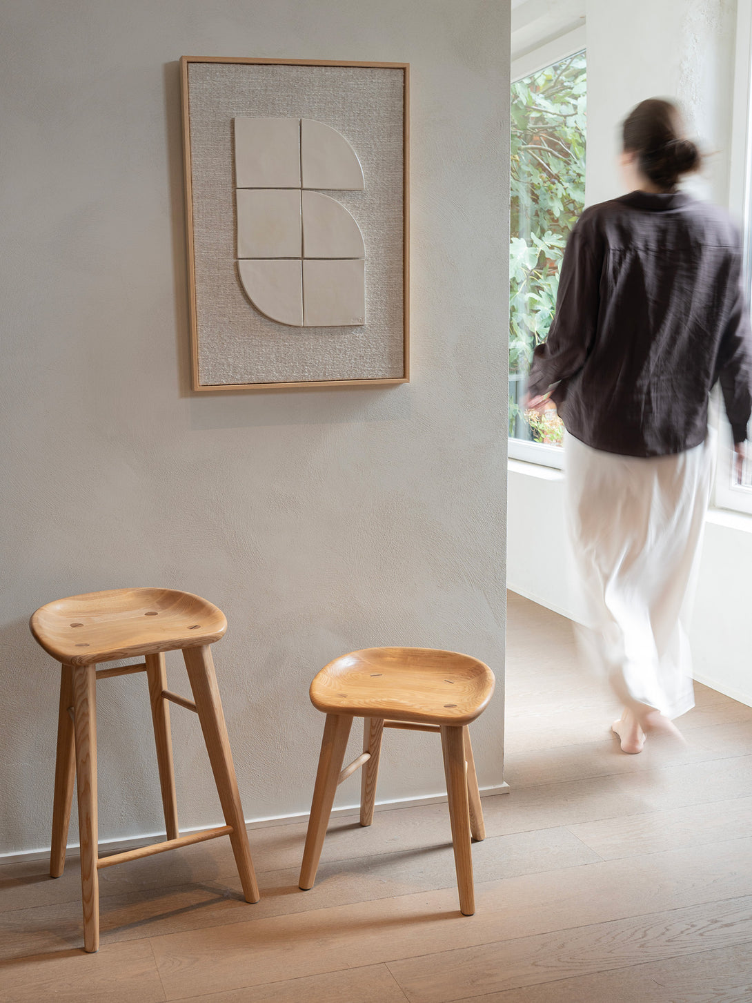 Ollie, short for Oliver, is thé master in bringing some happiness into your kitchen. Easy to slide under your kitchen island, but bringing boldness when getting pulled out. Did you know Oliver is a name that is often associated with kindness, strength and a calm, stable nature? We cannot agree more, although his nickname Ollie also brings the fun and cosy vibes. Oh, and he's made out of strong ash wood.